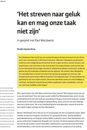 Artikel: Paul Watzlawick en de regels van het spel
